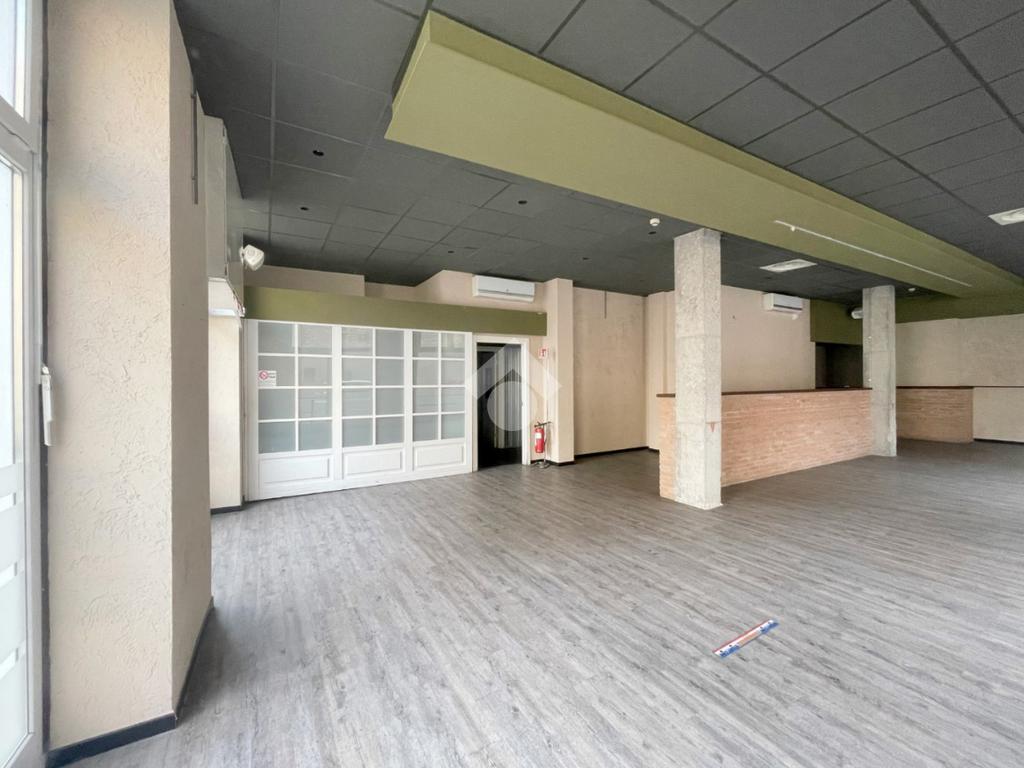 - Predisposizione interna: Vetrinato su tre lati, si sviluppa con una particolare conformazione a “C”, caratterizzata da un ampio openspace frontale facilmente modulabile, con possibilità di suddividerlo in tre ambienti distinti. Presenti sul retro servizi igienici a norma per il pubblico e dedicati al personale